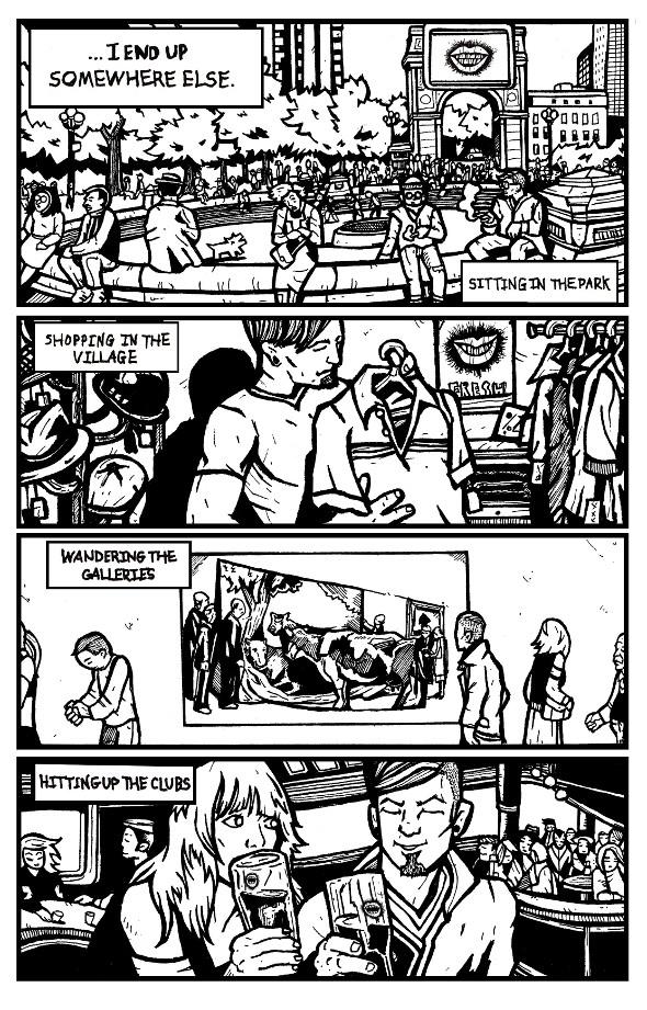 At any rate my concerns regarding the demise of art as an intellectual practice basically sent me into a state of distracted artist block like the one featured in this story. For a few months I basically didn't draw anything unless there was a commission already in place. When I started putting this book together it was my intention to examine my psychological state of despair but oddly enough I had no idea were the fable would lead me. The adventure was extremely cathartic and set me to work with a vigour I'd recently forgotten. With each new page my love of drawing, and comic books in particular, was renewed. By the time I'd completed the book I felt as though I got a number of bad ideas out of me and onto the paper in a way that is far more uplifting , fun and positive than I imagined when I began. After publishing the book I felt free from my art world squabbles and was ready to move on to more important topics in my next surreal tale.